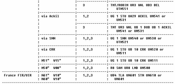 SAMPLE OF PREFERRED ROUTES FOR NAT TRAFFIC - WESTBOUND