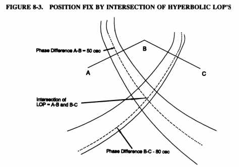 FIGURE 8-3. POSITION FIX BY INTERSECTION OF HYPERBOLIC LOPS