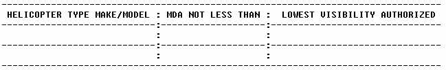 (a) Energy Resources, Inc. is authorized to use the following OSAP approach and landing minimums for the helicopters listed in the following table, provided that the conditions and limitations in paragraphs (b) and (e) are met.